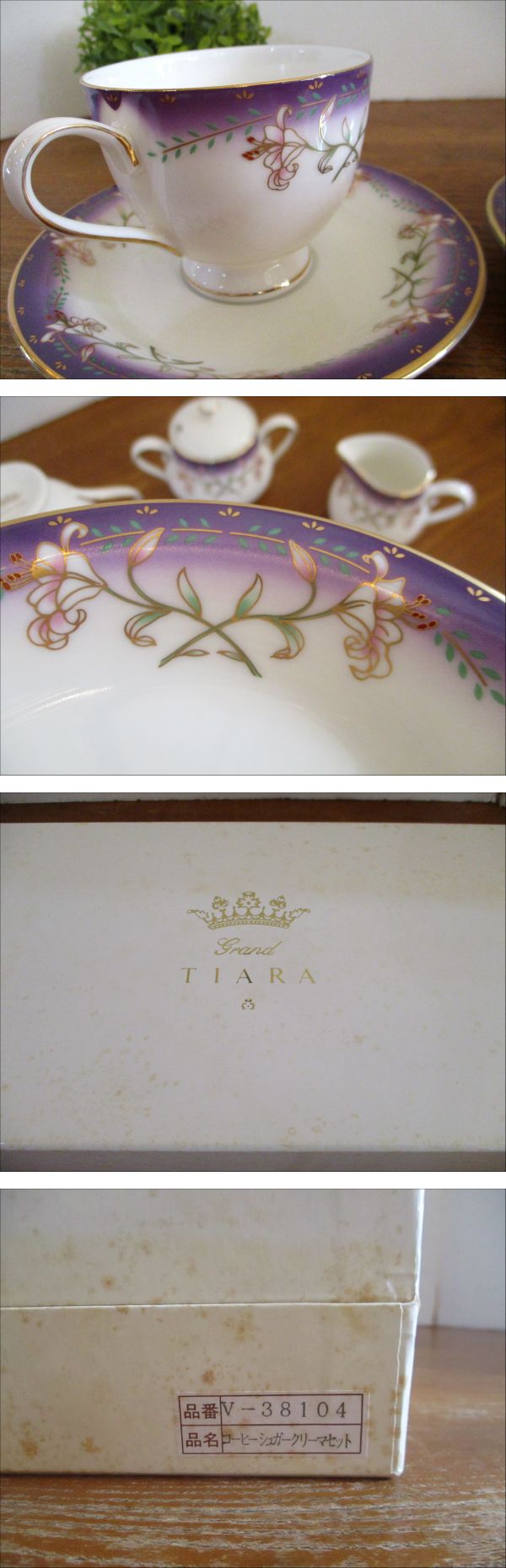 【未使用・箱入】Grand TIARA カップ&ソーサー2客・シュガーポット・クリーマー 計4点セット 茶器 コーヒーカップ 洋食器 金彩 花柄 C&S | |||