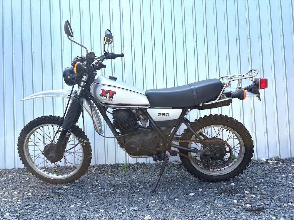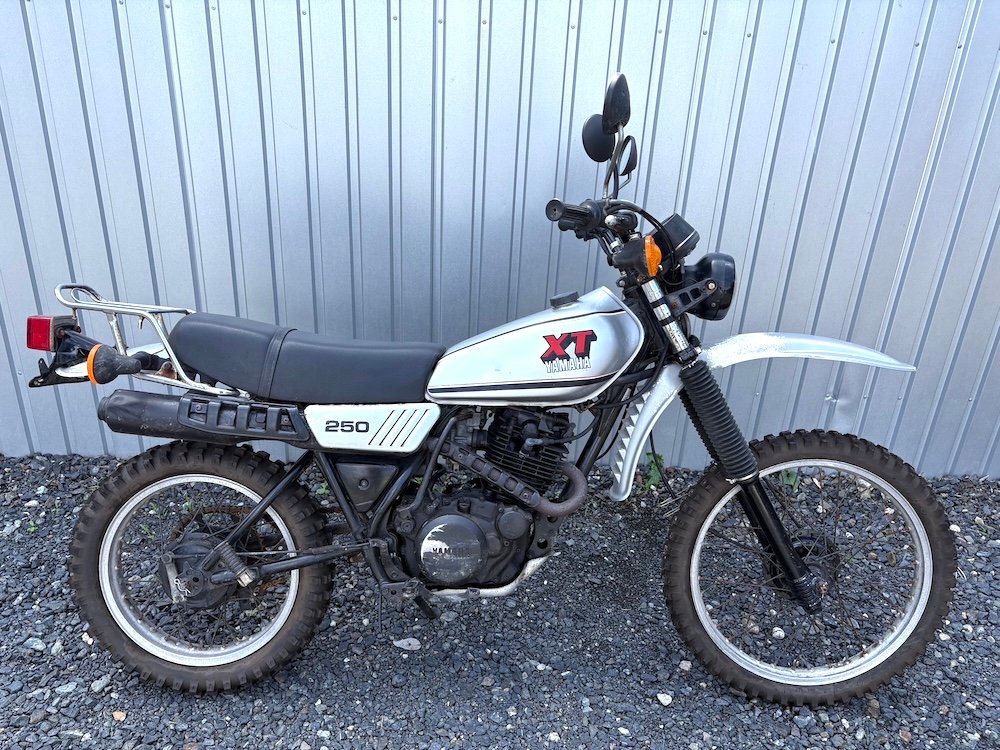 ヤマハ XT250を入庫致しました。 中古車の車体になりますので、傷、汚れ、サビがございます。 エンジンはキックにて始動確認済みになります。