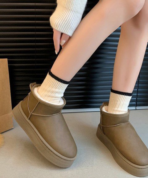防寒ブーツもこもこ ボアシューズ 保温 美脚 モカシン厚底