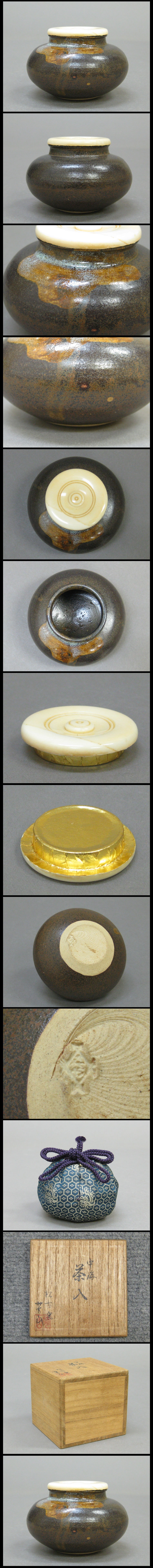 【心庵】萬古焼 佐々間芳山 松古窯/中海 茶入 仕覆付 共箱 茶道具 A1274 收藏