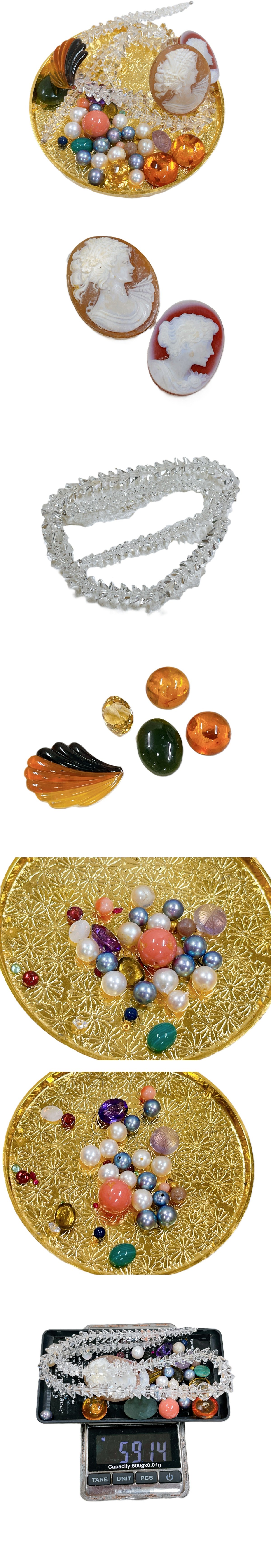 ◇ルース石約59g◇翡翠 オパール 桃色珊瑚 パール カメオ トパーズ アメジスト 琥珀 べっ甲 水晶など 外し石 裸石 ハンドメイドに 收藏
