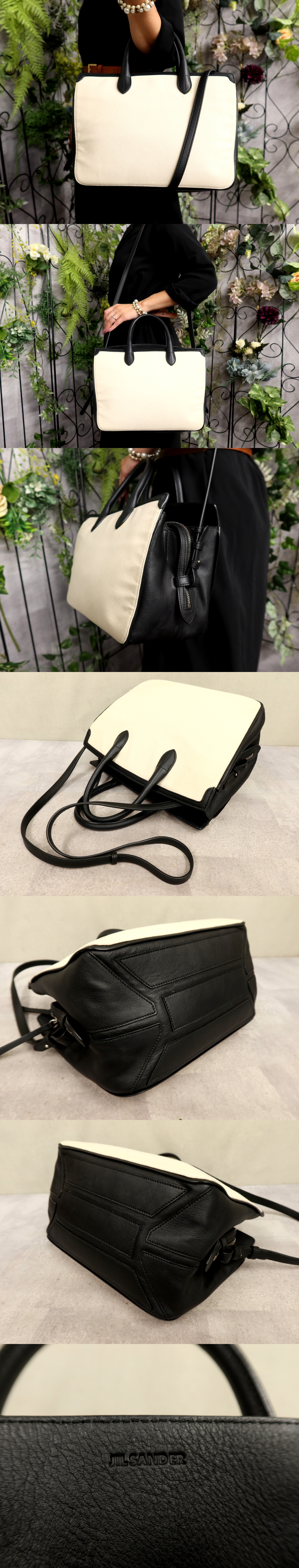 ●超美品●JIL SANDER ジル・サンダー●キャンバス カーフ レザー 本革●2way ハンド バッグ●白 黒●シルバー金具●B5 書類 収納●Js60903 收藏