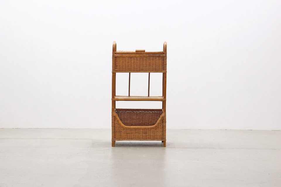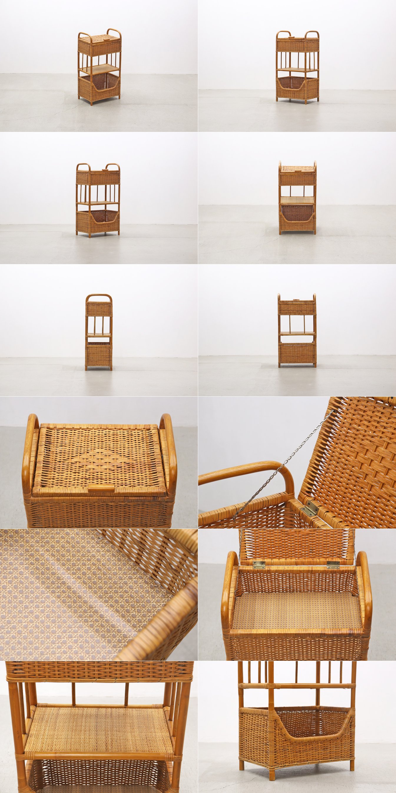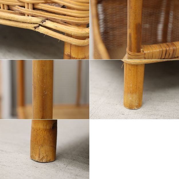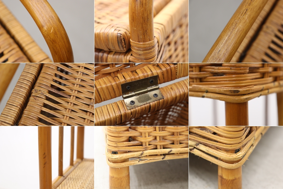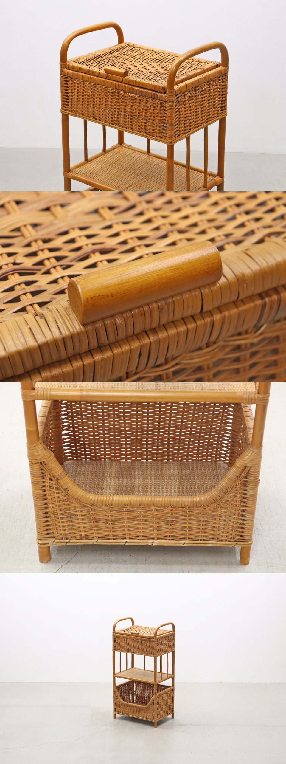 ◆レトロ ラタン 籐 2段 収納 ランドリー ラック ボックス 浴室/ヴィンテージアンティーク昭和オールドサロン古民家/PIT23150◆ 收藏