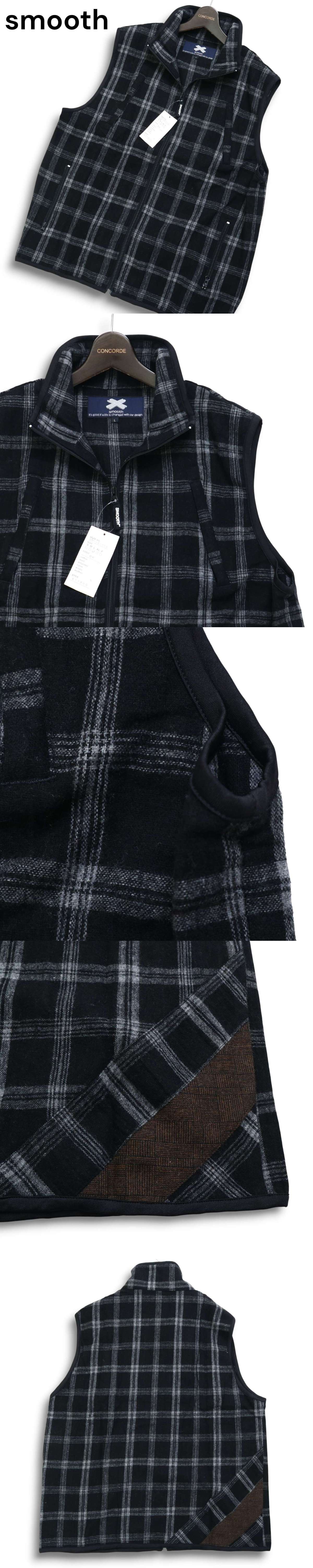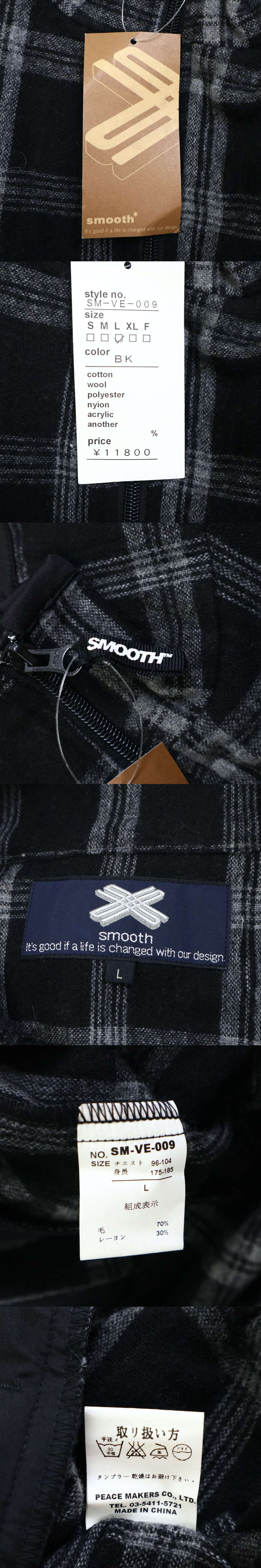 【新品 未使用】 smooth スムース 秋冬 ウール★ ジップアップ チェック ベスト Sz.L メンズ 黒 收藏