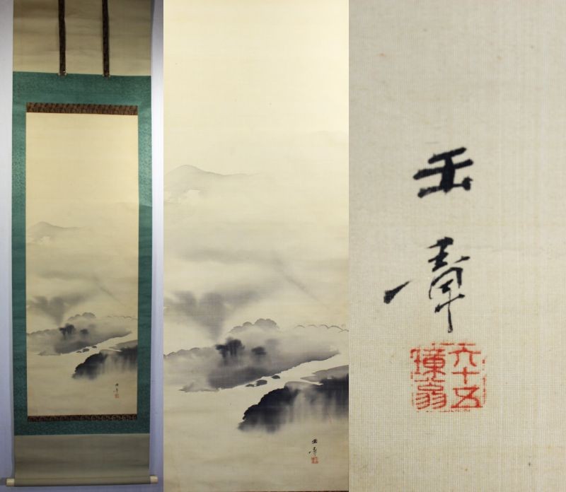 《真作》★川端 玉章【朝もや】(仮題) 古掛軸.桐箱入*師 中島頼章・小田海僊*帝室技芸員*内国勧業博覧会*川端画学校*京都.物故*[桃] 收藏