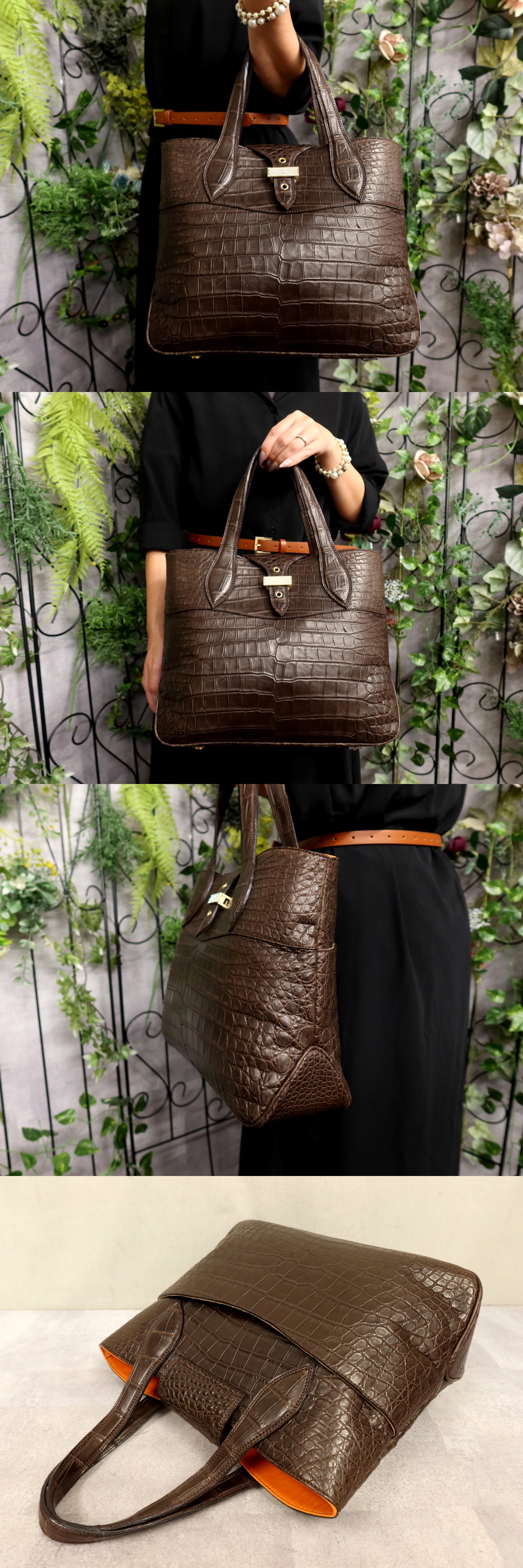 ●超美品●A.D.M.J エーディーエムジェイ●グレース・ケリー●クロコダイル 本 ワニ 革●ハンド バッグ●ブラウン●G金具●A4●Js61078 收藏