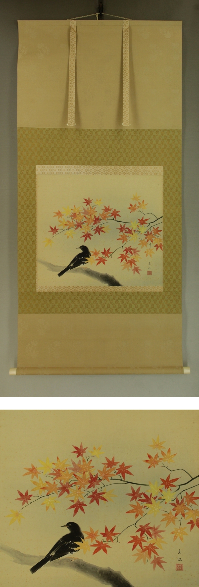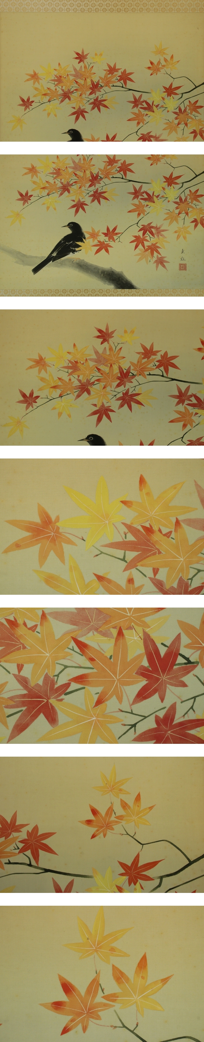 | №2506048【真作】山本倉丘【錦秋】◆絹本◆共箱◆二重箱◆太巻掛軸 | |
