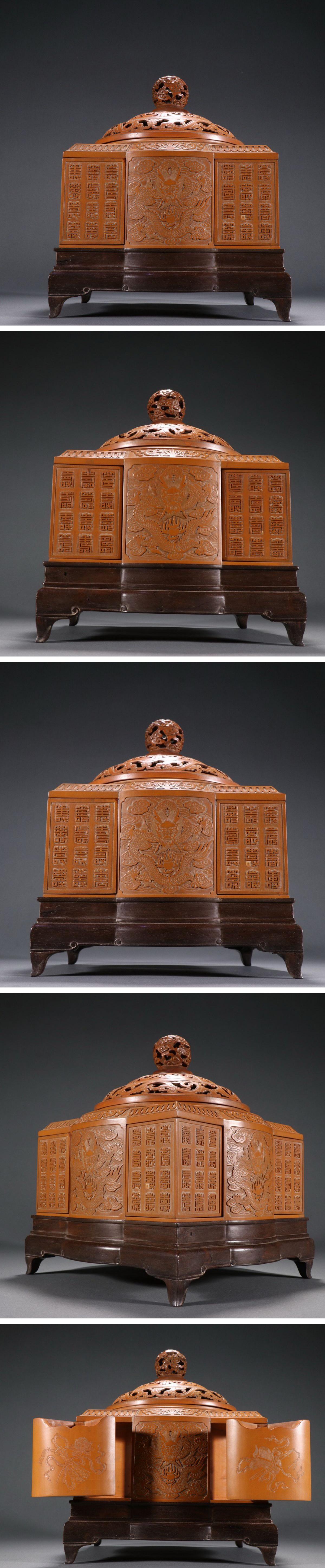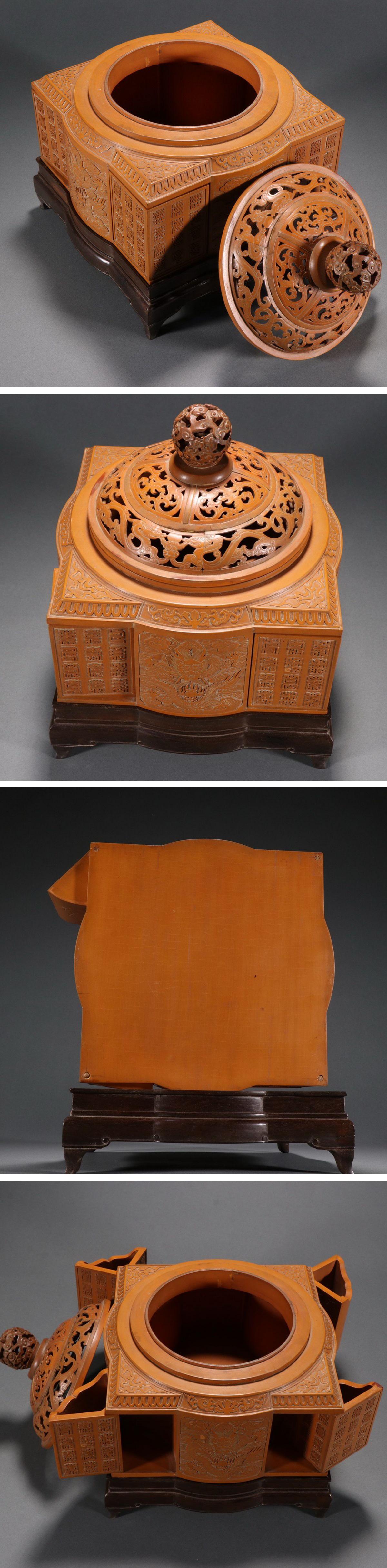 【清】某有名オークション購入 清時代 木胎 貼黄 萬寿紋薫爐 材質保証 古置物 古擺件 古美術 時代コレクション7L9-OU1