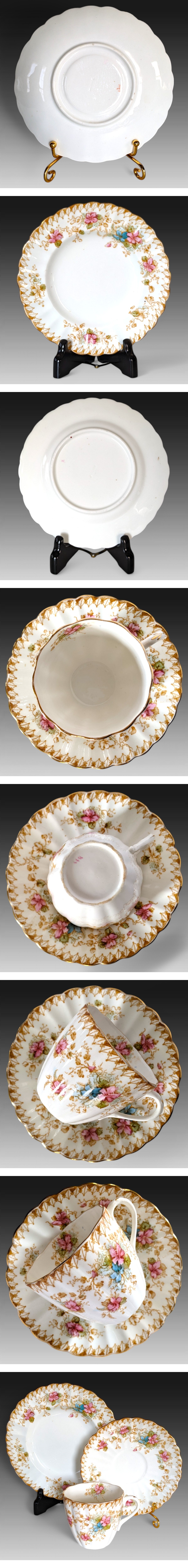 英国アンティーク 花柄 金彩 ティートリオ カップ&ソーサー プレート 手彩色 ボーンチャイナ ヴィンテージ イギリス製 212 |