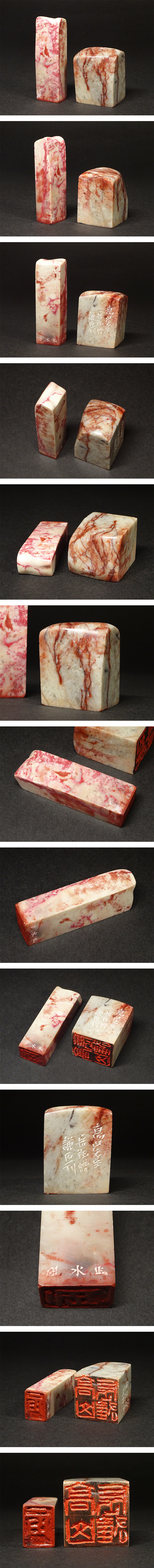 慶應◆文化勲章【高山辰雄】所持品 自用印「謙石・硯水」刻 寿山石・巴林石 印章2点 印材 書道具白芙蓉石田黄凍石鶏血石白砡翡翠 收藏