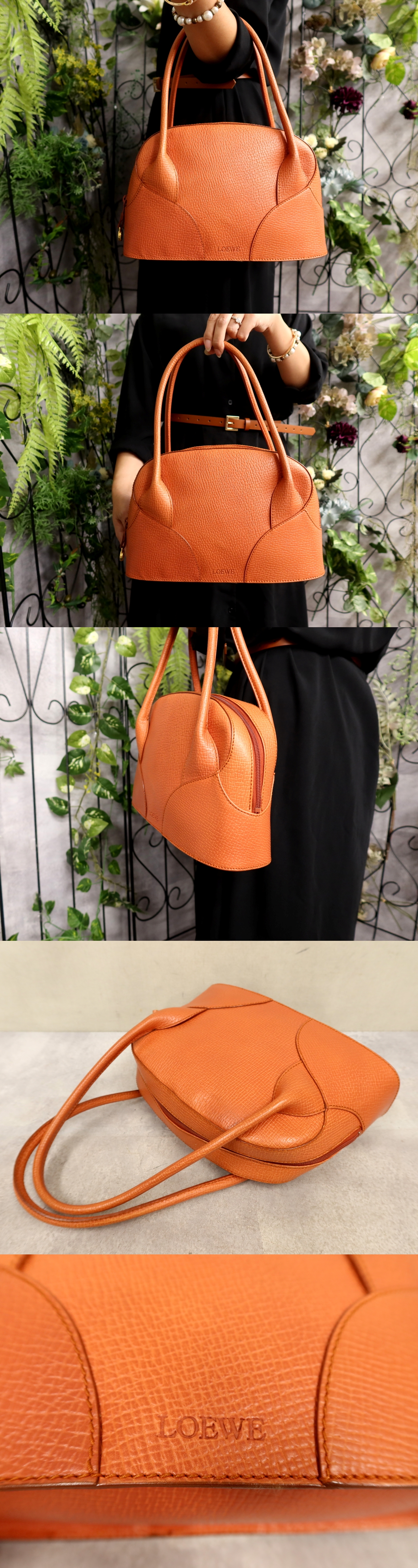 ●超美品●LOEWE ロエベ●ロゴ型押し●カーフ レザー 本革●ハンド バッグ●オレンジ●ゴールド金具●腕掛け●収納 かばん●Js61426 收藏