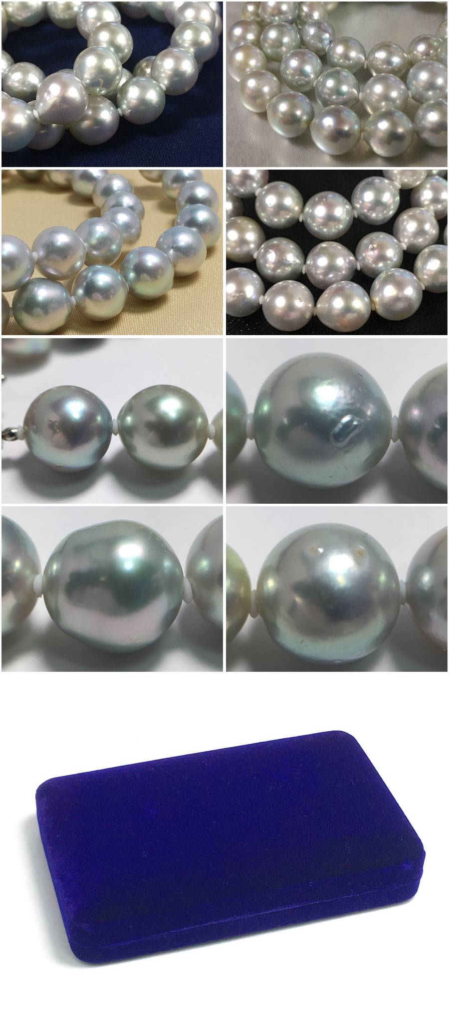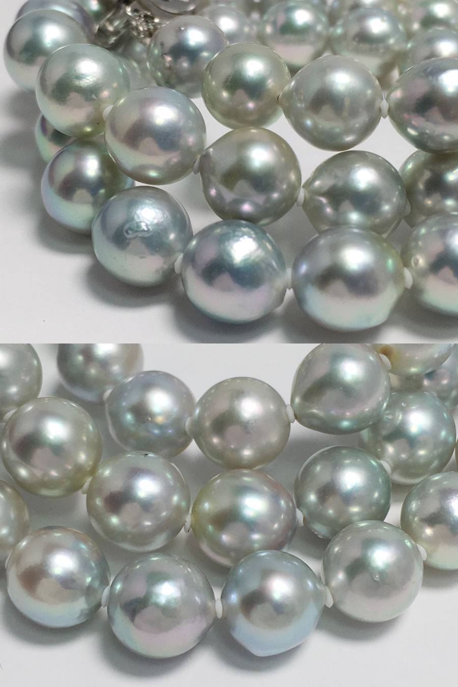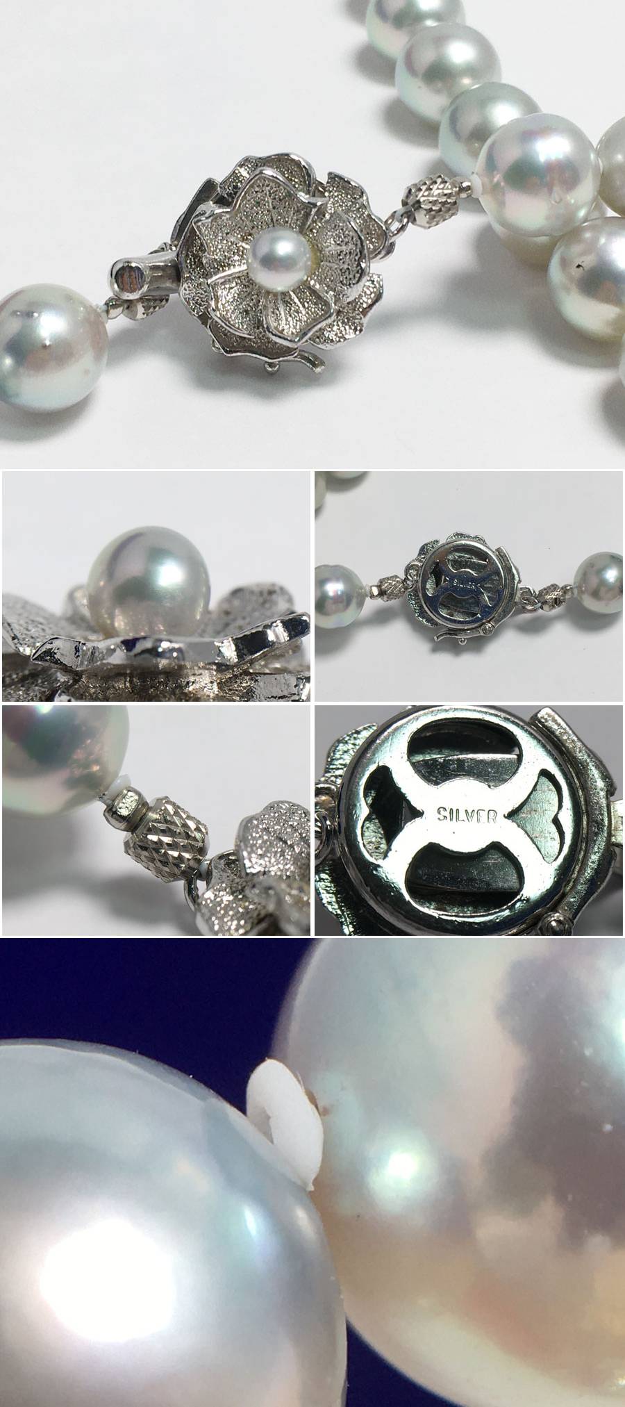 本真珠 アコヤ真珠 ネックレス 約47cm 留め具(表記SILVER) 約8.7~9.0mm 重量約55gセミラウンド シルバー・グレー系 收藏
