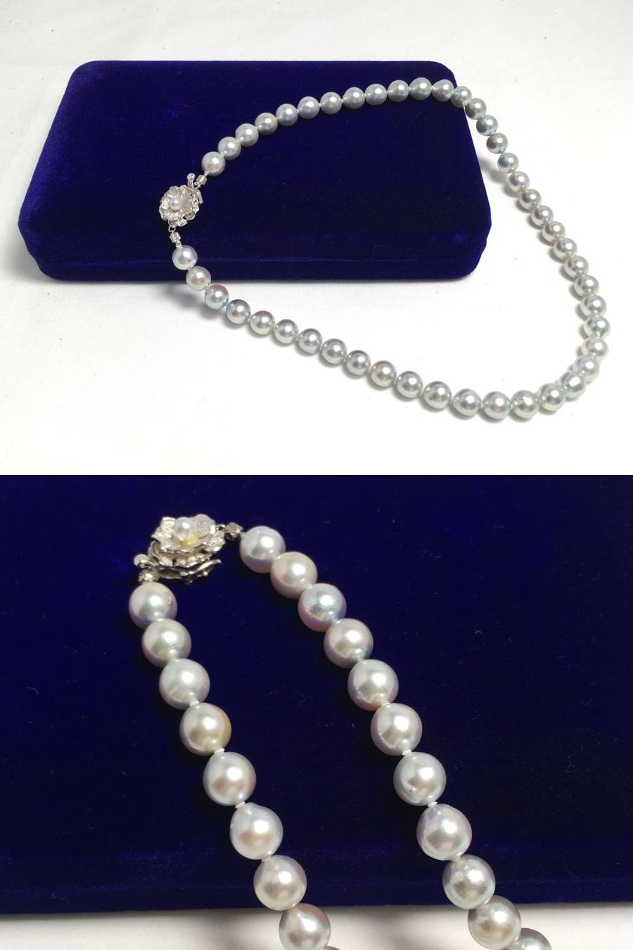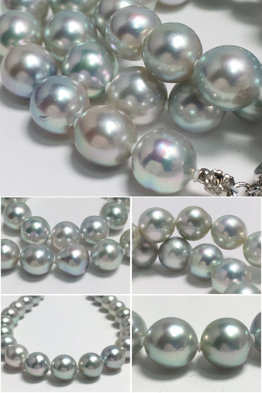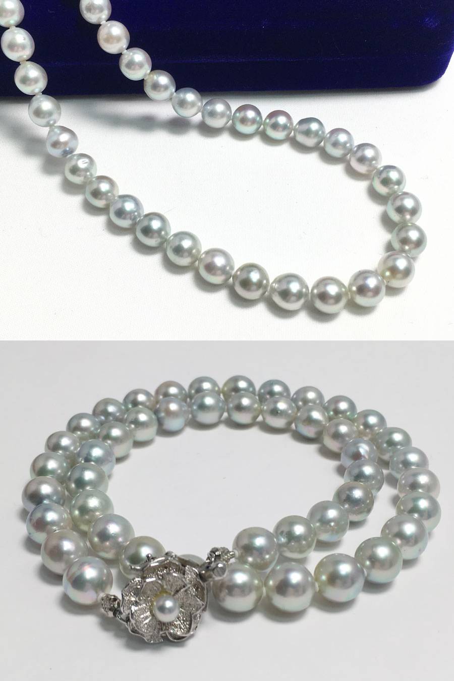 本真珠 アコヤ真珠 ネックレス 約47cm 留め具(表記SILVER) 約8.7~9.0mm 重量約55gセミラウンド シルバー・グレー系 收藏
