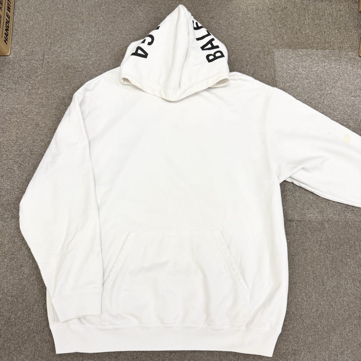 112『美品・デムナ期』 BALENCIAGA バレンシアガ メンズ プルオーバー スウェット パーカー フーディ フード ロゴ ホワイト Lサイズ 收藏