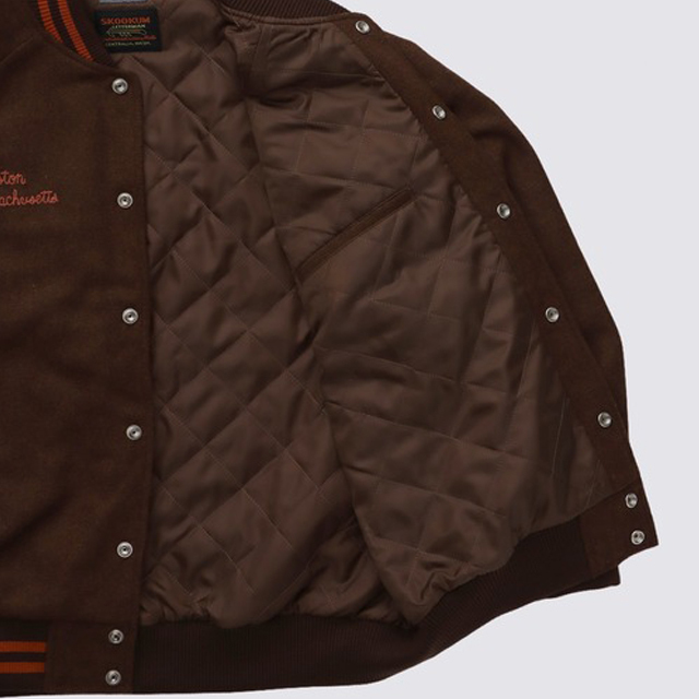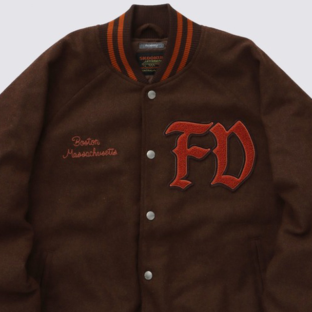 新品 XLサイズ FIDELITY × SKOOKUM WOOL STUDIAM JACKET フィデリティ スクーカム ウール スタジャン スタジアム ジャンパー ブラウン 收藏