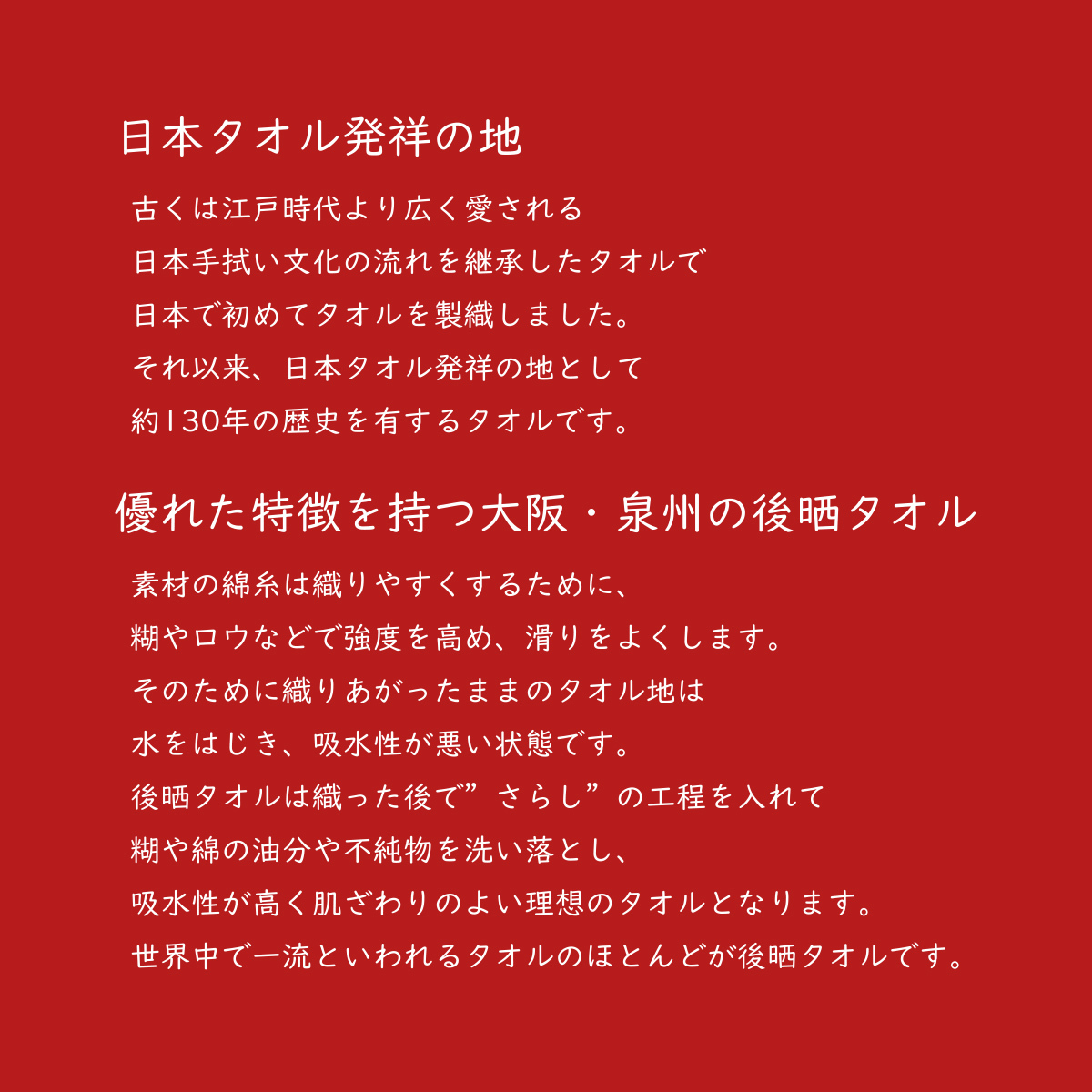 | タオル全般の特徴 | |