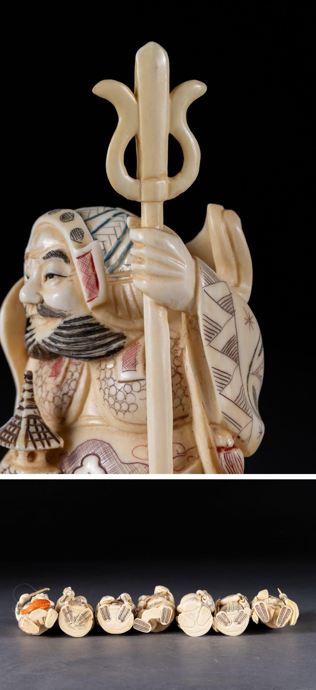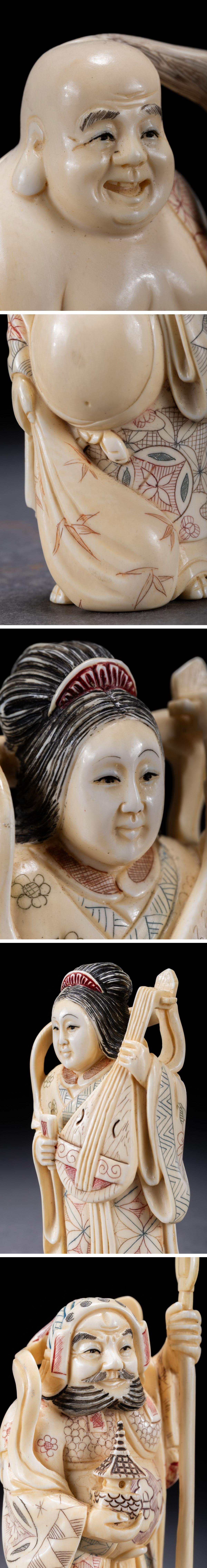 【華】時代舊藏 時代物 特殊白材 七福神造像 時代物 古美術 骨董品A25070294-TQ