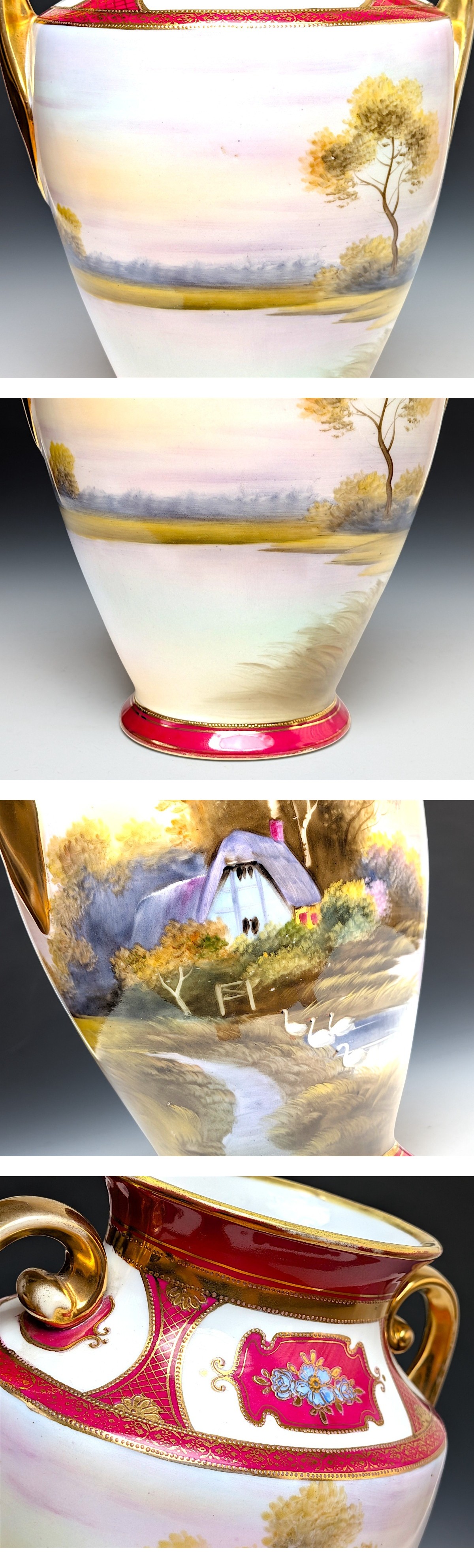 1906年~1925年頃 オールドノリタケ 金彩 白鳥 両耳花瓶 | ||||