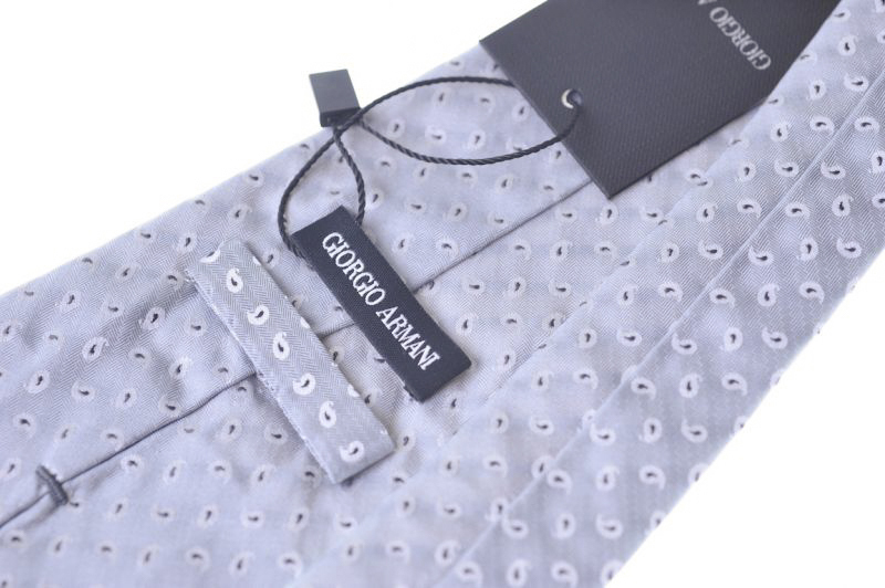 SALE★[TI1073]ジョルジオアルマーニ黒ラベル「ペイズリー柄」シルバーネクタイ 收藏