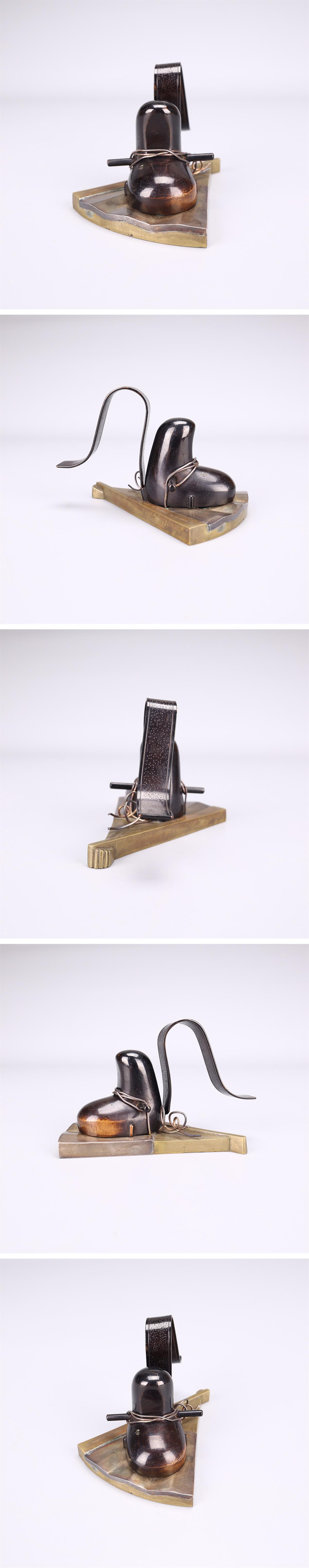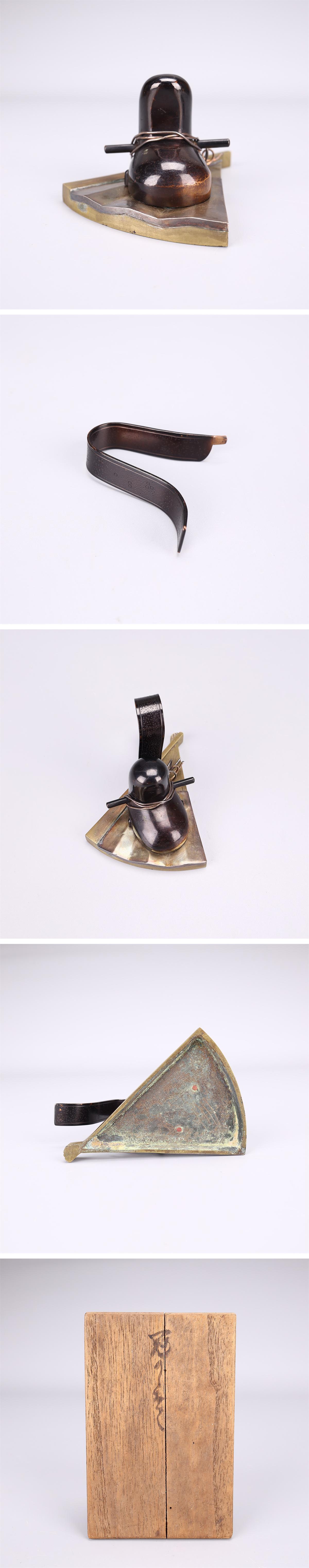 【吉】DA870 江戸時代 【銅製】 銀線巻 銀製 冠 置物/共箱付 美品! 收藏