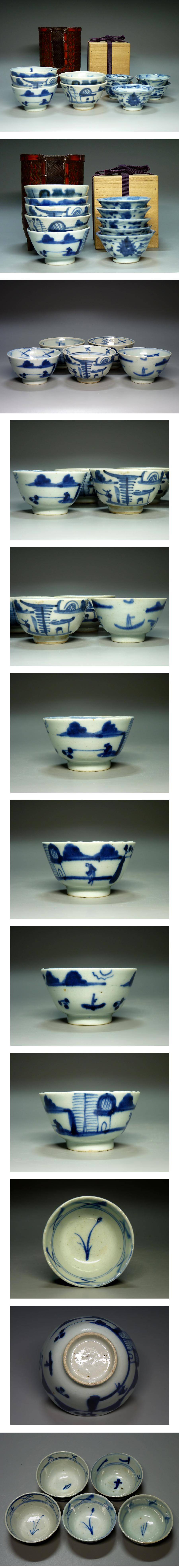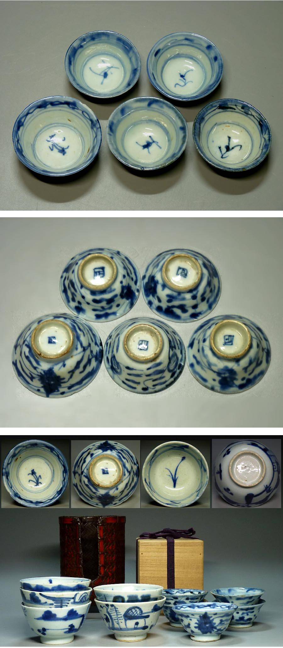【夢たま】ウブ品!唐物 明代 清代 古染付 煎茶碗 大小十客 中国煎茶/中国古玩 茶心壺 籠付 煎茶道具☆ 收藏