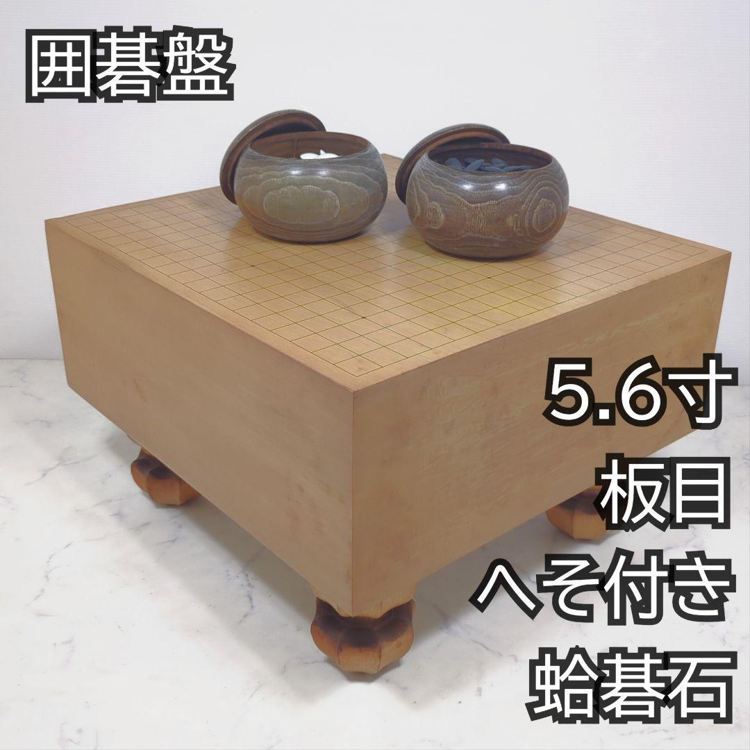 囲碁盤 脚付き 5.6寸 天然木 板目 木裏 へそ付き 蛤碁石 收藏