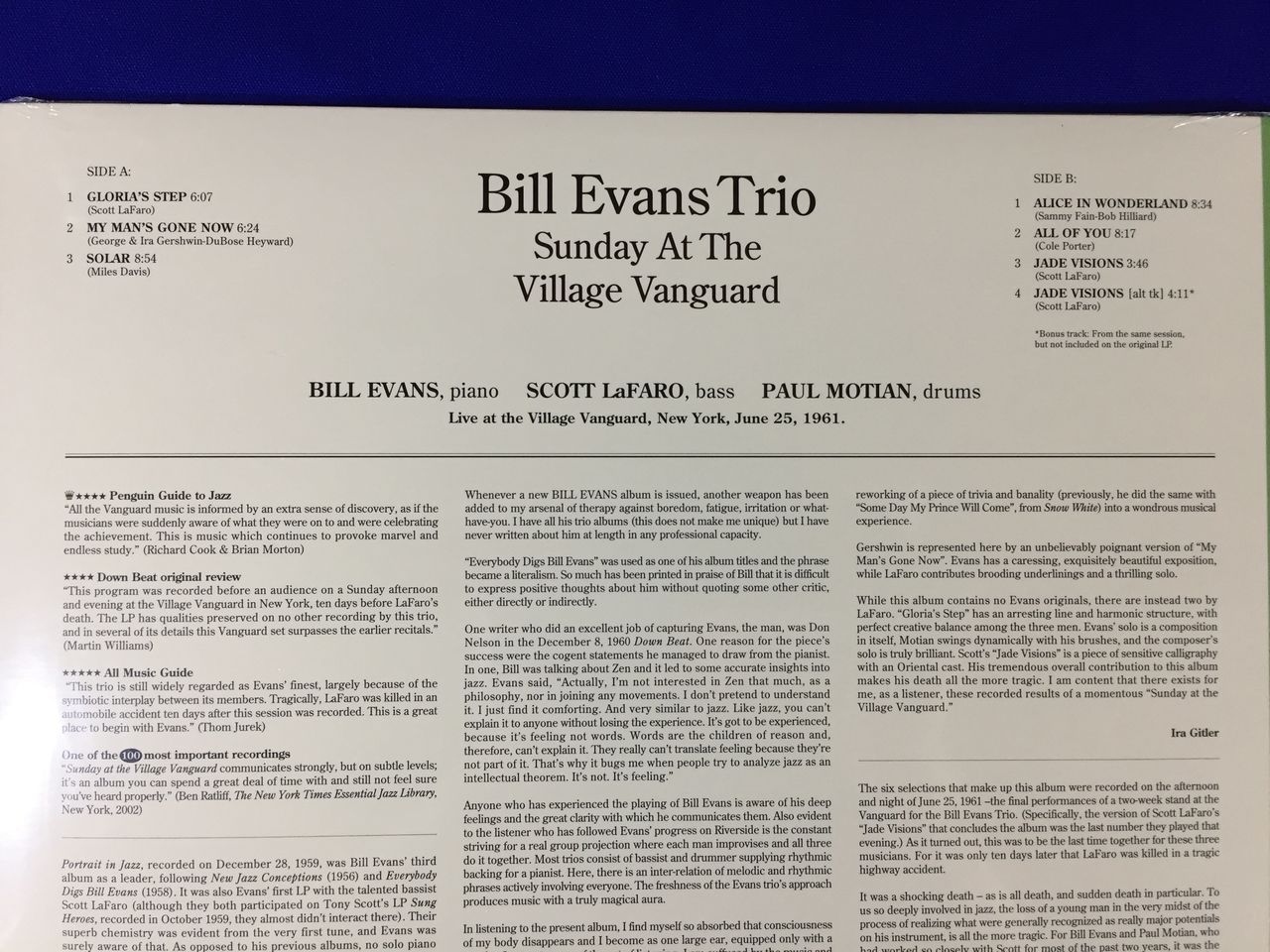 未開封 匿名配送&補償付 カラー盤 ビル・エヴァンス 丁寧な梱包 ジャズ レコード Bill Evans Sunday At The Village Vanguard 1LP Jazz 收藏
