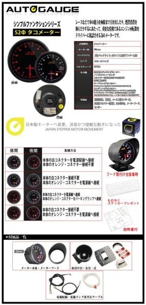 日本製モーターを使用し、俊敏で軽快な動作をするオートゲージ製追加メーター! タコメーターは、レースなどで車の能力を極限まで引き出したり、重症な情報であるエンジン回転数をドライバーに視認させるためのメーターです。 |