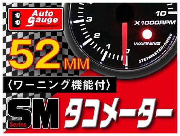 オートゲージ タコメーター 52Φ SM スイス製モーター スモークレンズ ワーニング機能 オープニングセレモニー ホワイトLED 52mm 52SMTAB 收藏