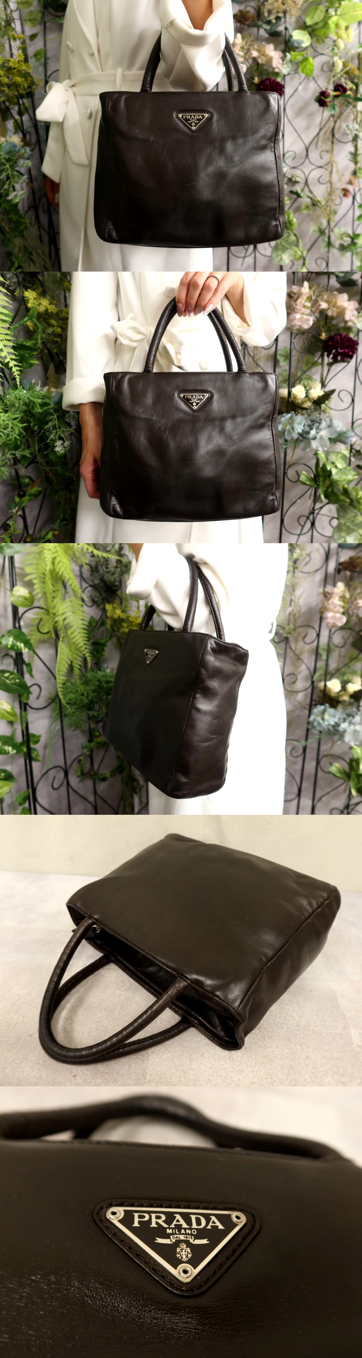 ●超美品●PRADA プラダ●三角ロゴプレート●カーフ レザー●ハンド バッグ●ダークブラウン●SV金具●イタリア製●ヴィンテージ●Js61710 收藏