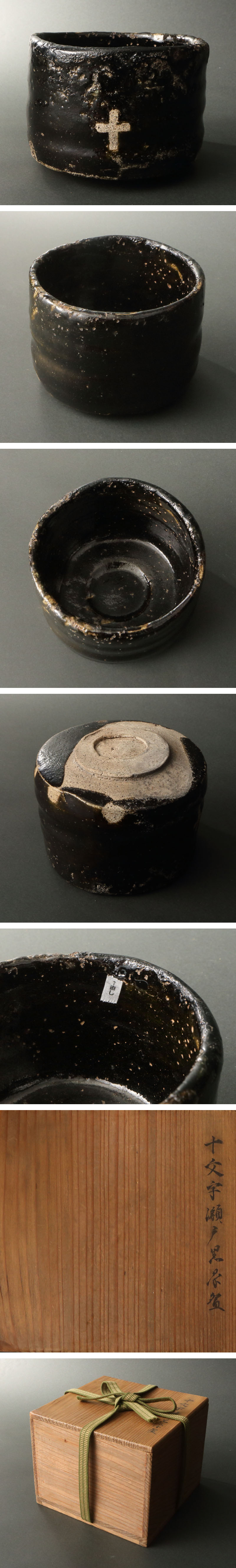委託HK◇時代 瀬戸黒写十字紋茶碗(茶道具 陶磁器 陶芸 美濃焼 瀬戸焼 クルス キリシタン 十字架 クリスマス 黒茶碗) 收藏