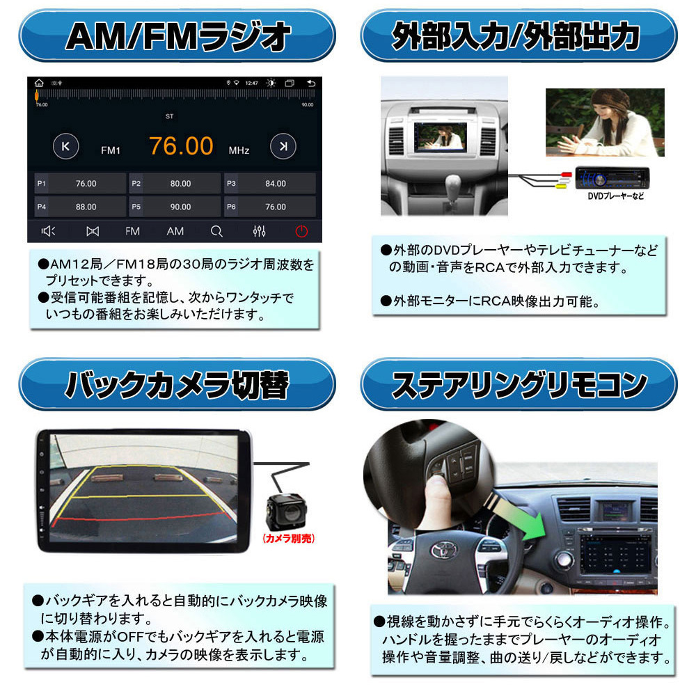 RAM8G+ROM128GカーナビAndroid10 2DIN 10.1インチ+地デジ2x2フルセグチューナー+170度バックカメラcarplayアンドロイドオート 收藏