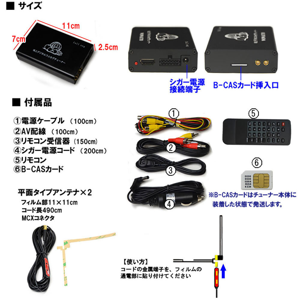 電源・スピーカーコード、GPSアンテナ 地デジ2 x 2フルセグチューナーセット 170度バックカメラセット iPhoneスマホ接続方法日本語説明書、配線日本語説明書 |