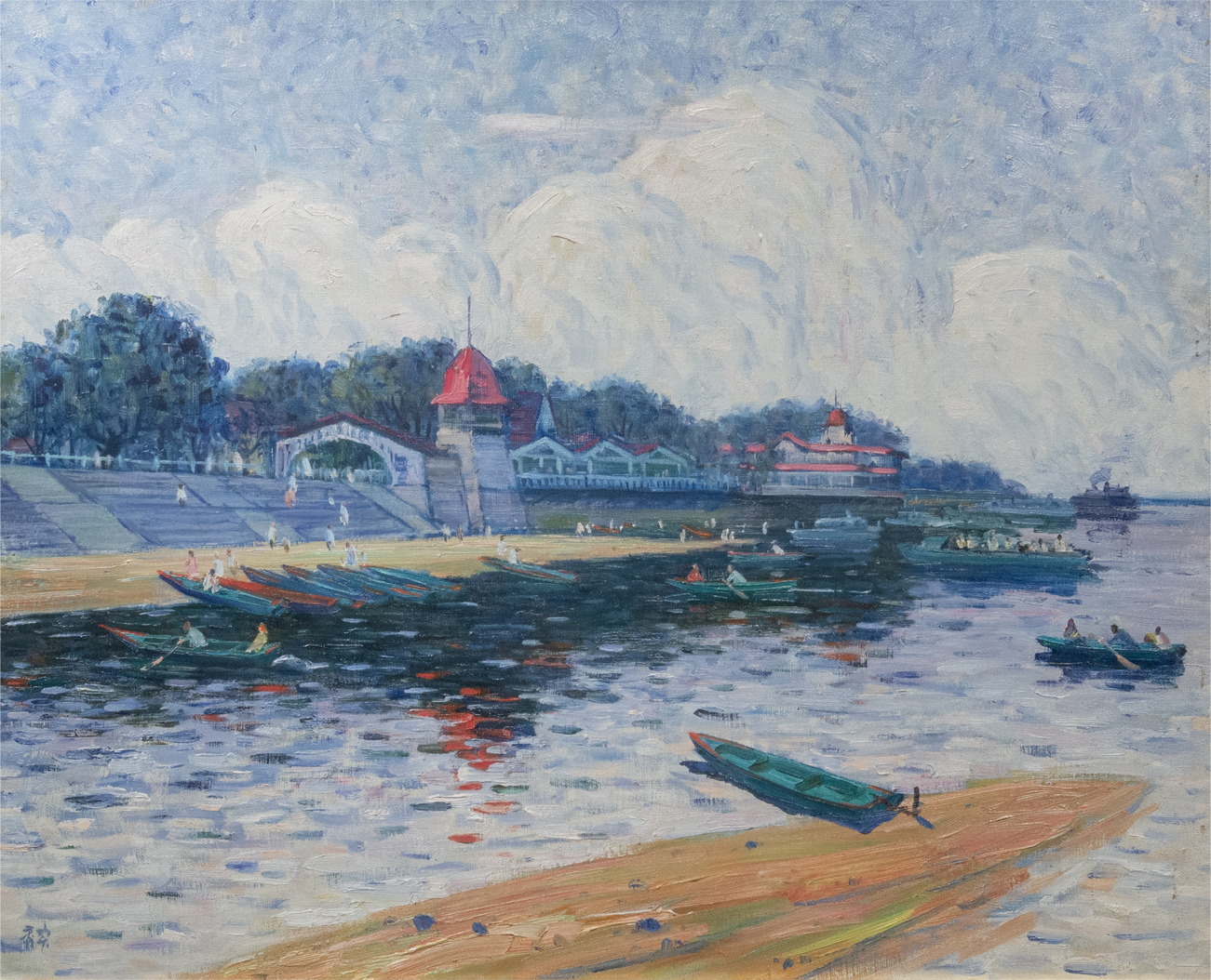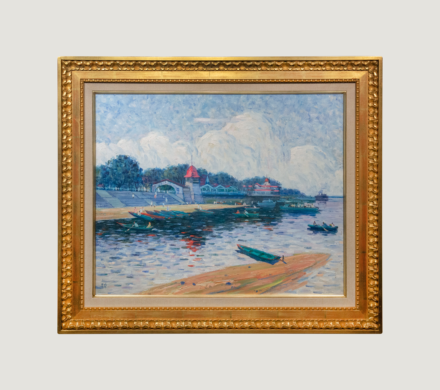 李秀實 90年代初期作 ハルビン風景 油画 額装 真作保証 李秀实 哈尔滨风景 中国 近現代絵画 現代アート 收藏
