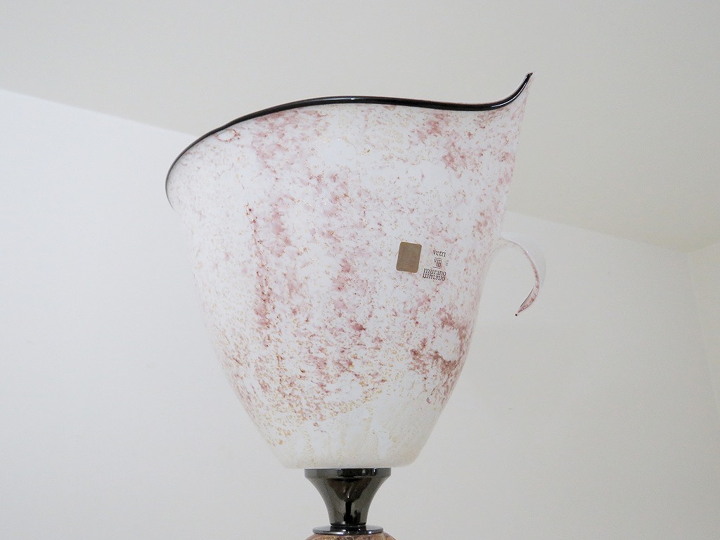 シェード中央にはメーカーのシールに加え、ムラーノ島のガラス製品の本物性を保証する「VM(Vetri Murano)」マークが見られます。