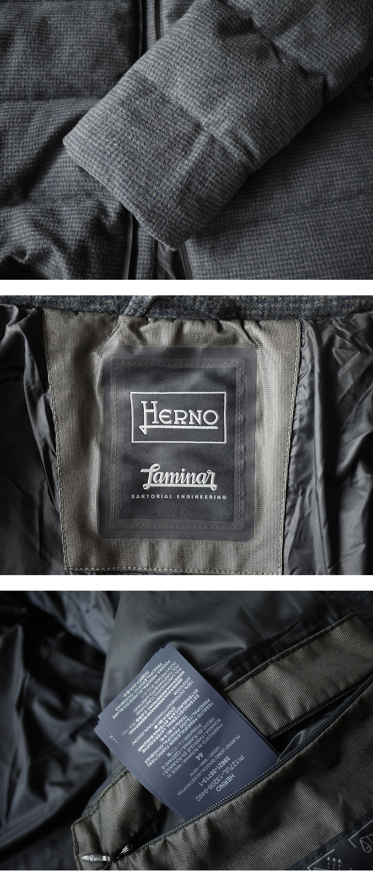 起毛感のあるきめ細やかなコットン地を採用し、しっかりと厚みがありふんわりと柔らかく、着心地への追及とデザイン性を損なわない見事なバランス感覚は、ヘルノの素材へのこだわりを改めて感じさせる見事なマテリアルです。中綿が入っておりますので真冬にも対応できる十分な保温性がございます。ヘルノらしいモードとラグジュアリーを介在させたエレガントな逸品でございます。