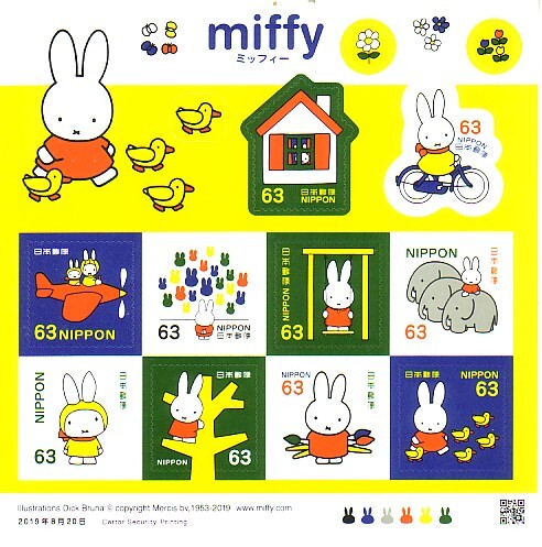 「miffi ミッフィー」の記念切手です (63円切手X10枚)。送料は普通140円(普通便 複数同梱発送では180円)になります。