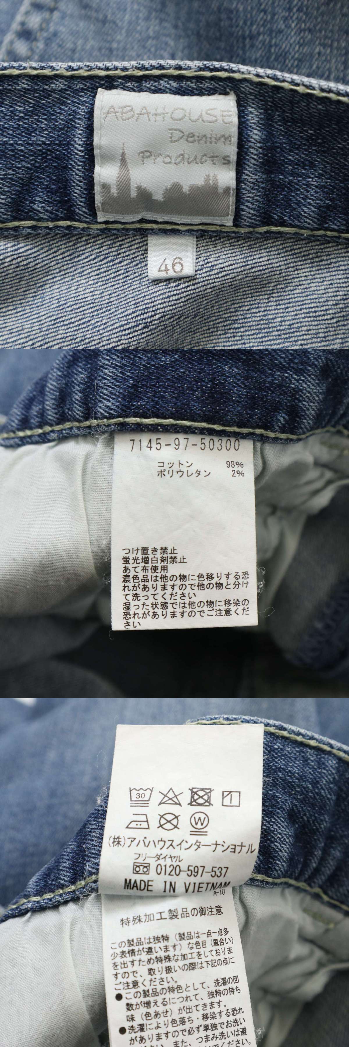 ABAHOUSE アバハウス USED加工★ デニム ストレッチ スキニー パンツ ジーンズ Sz.46 メンズ 收藏