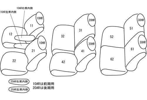 | シートパターン | ヘッドレスト総数:6 1列目肘掛:2 2列目肘掛:0 3列目肘掛:0 サイドエアバッグ:× |