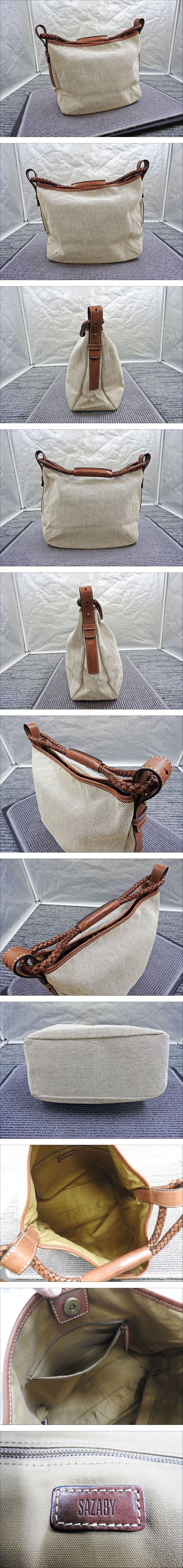 【美品】SAZABY サザビー■本革ハンドル ショルダーバッグ ワンショルダー キャンバスベージ×茶 ■USED品「管理№KT1568」 收藏