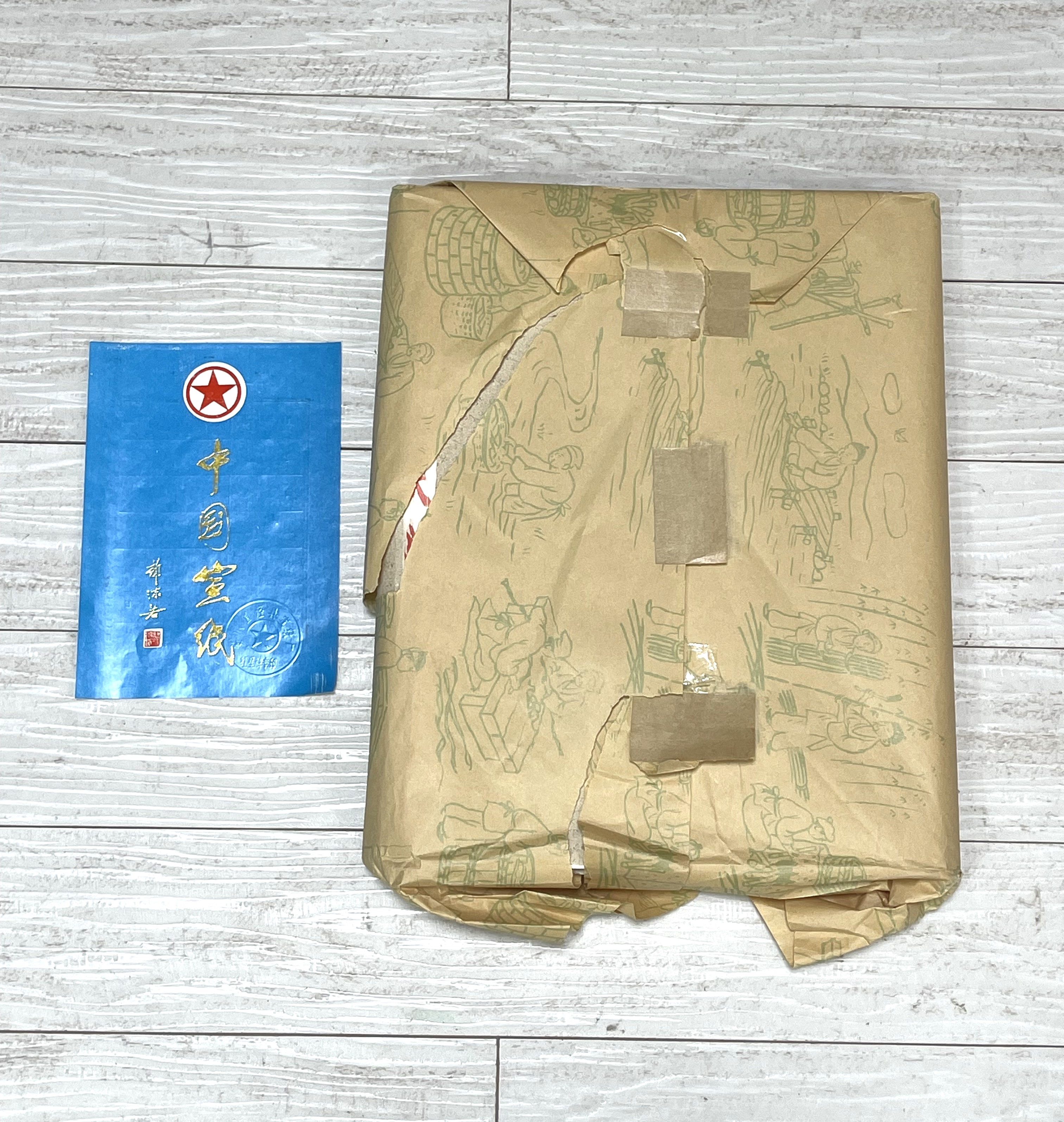 【風車】 紅星牌 五星 星級 棉料 四尺 単宣 100枚揃い A級 1994年 安徽省涇県宣紙廠 ▲郭沫若題 20×138cm▲中国宣紙 文房具 古紙 唐紙