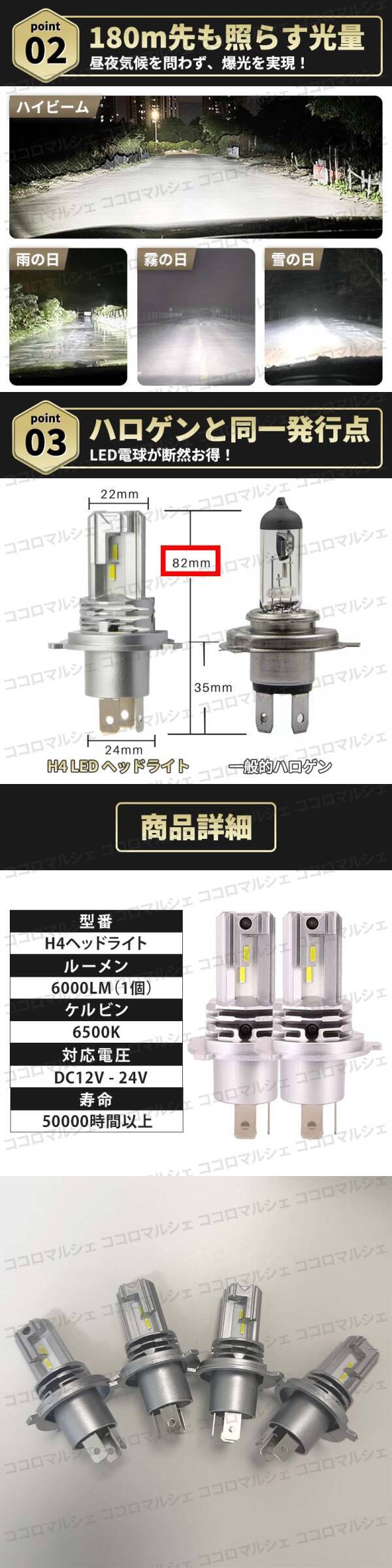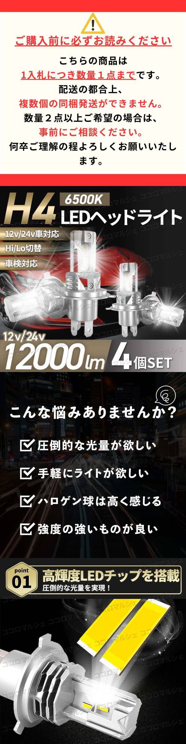 H4 LED ヘッドライト 4個セット バルブ 車用 爆光 Hi/Lo 車検対応 防水 ボン付 白 ホワイト カー用品 トラック ハイロー ランプ バイク 收藏