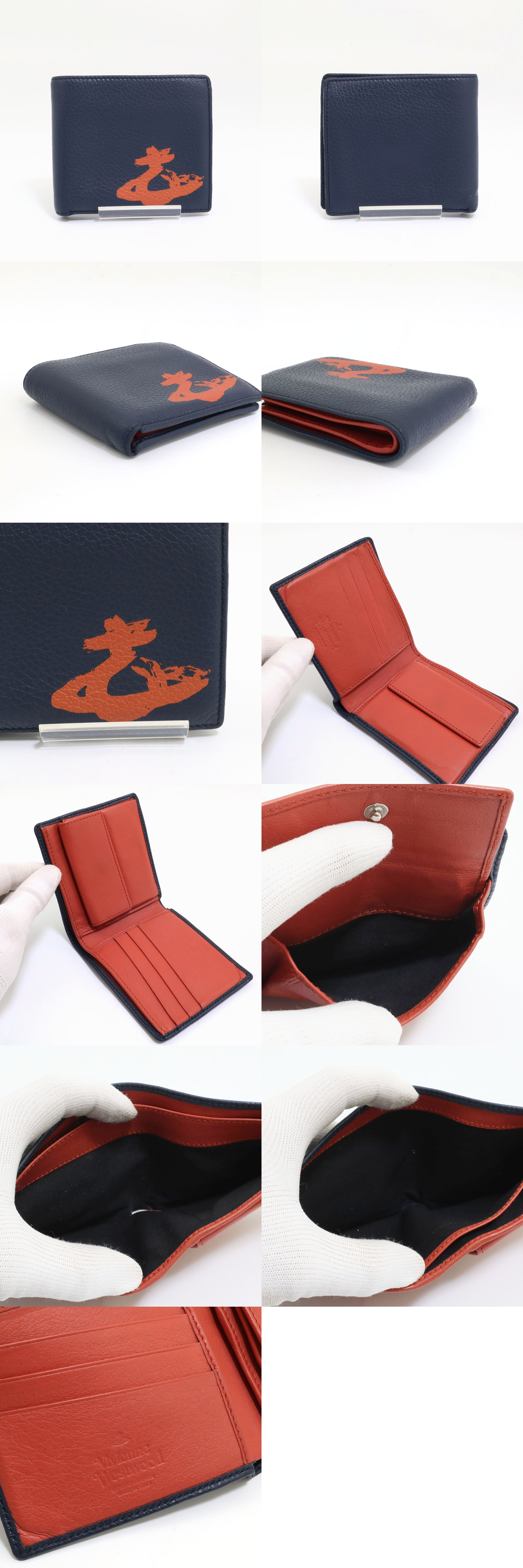 ヴィヴィアンウエストウッド Vivienne Westwood MELIH オーブペイント 二つ折り財布 ネイビー メンズ レディース レザー 收藏