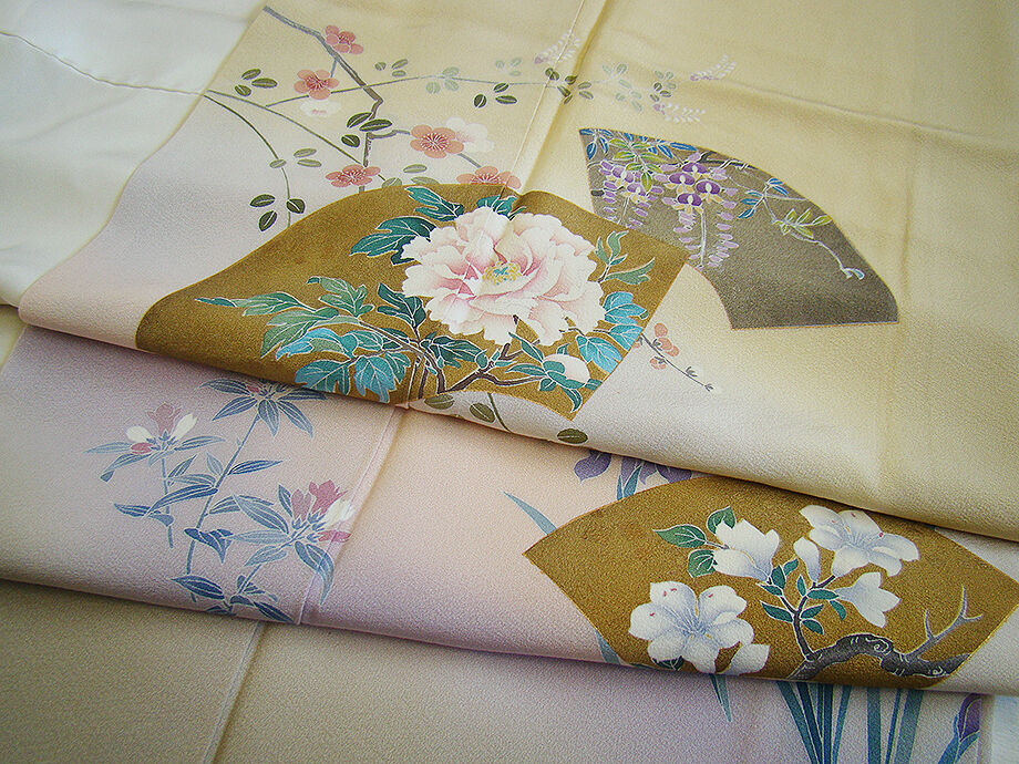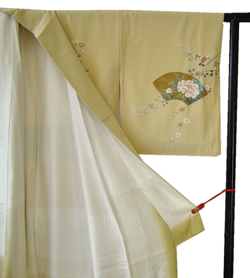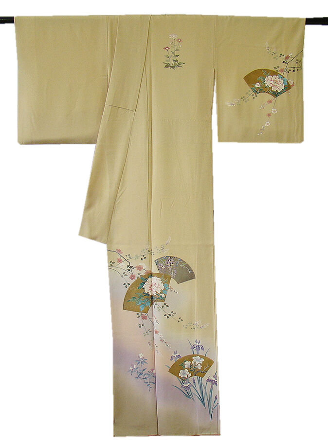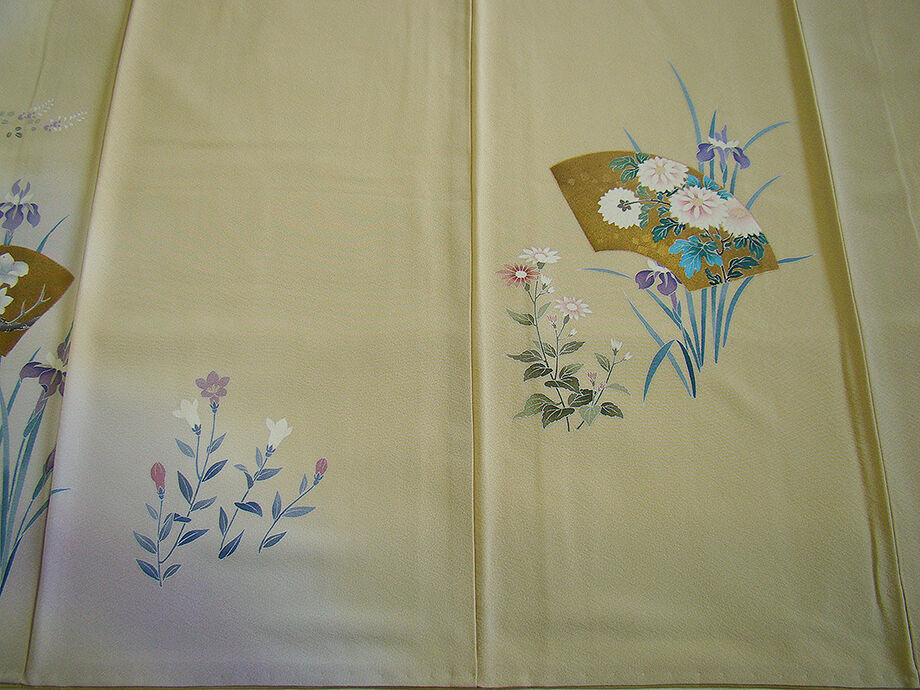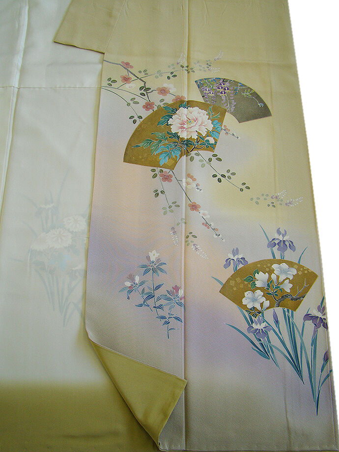| 商品説明 | こちらのお品は「袷」ですので10月から5月までお召頂ければと思います。 とてもしなやかで柔らかな手触りの着心地良い重めの上質な極上ちりめん地の生地、 白橡色地に裾にかけてベージュ、藤色ぼかしに地紙文に花草柄の本加工染に金彩加工仕立て、 気品に満ち溢れた彩りが正統派のお着物として一枚は欲しい逸品の素敵なお着物です。 八掛は蒸栗色(正絹)、幅広い年代の方にお召頂けます。 |