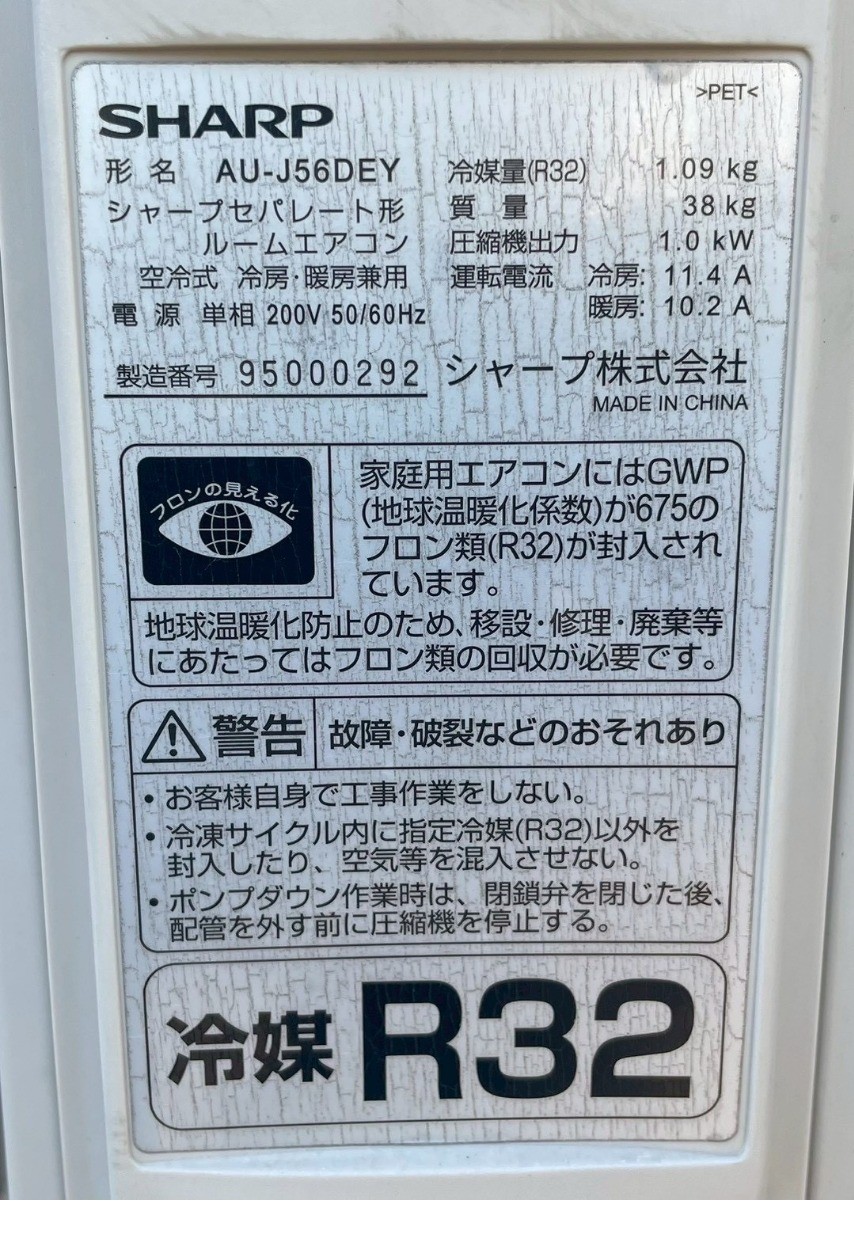【婀】SHARP シャープ ルームエアコン AY-J56DE7 2019年製 5.6kW 主に18畳用 プラズマクラスター25000 J23FAAB 收藏