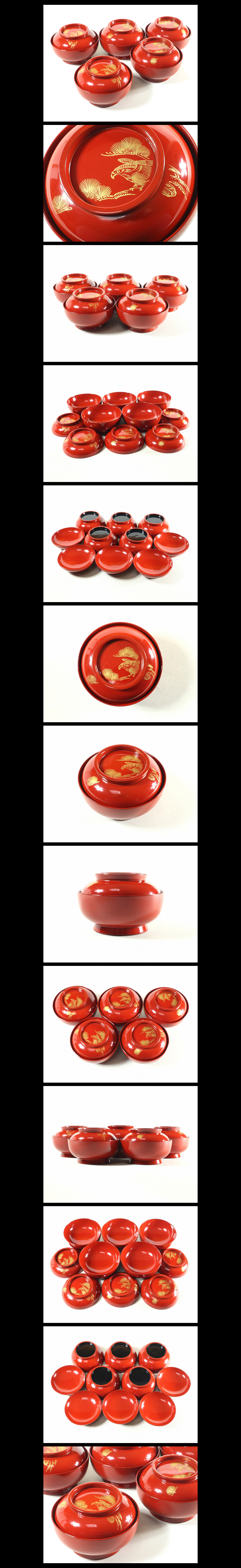 ●c1121●極上【輪島塗菓子椀5客/松に鷹 朱蝋色/煮物椀吸物椀】検お茶会煎茶道具茶懐石●西瓜●