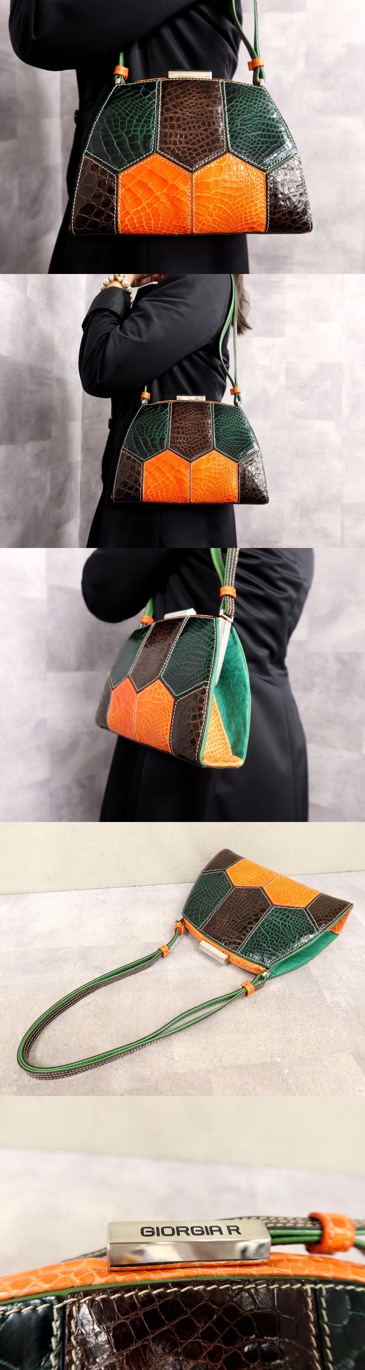●未使用●GIORGIA R ジョルジアアール●パッチワーク●クロコダイル 本 ワニ 革●ショルダー バッグ●マルチカラー●SV金具●Js63466 收藏