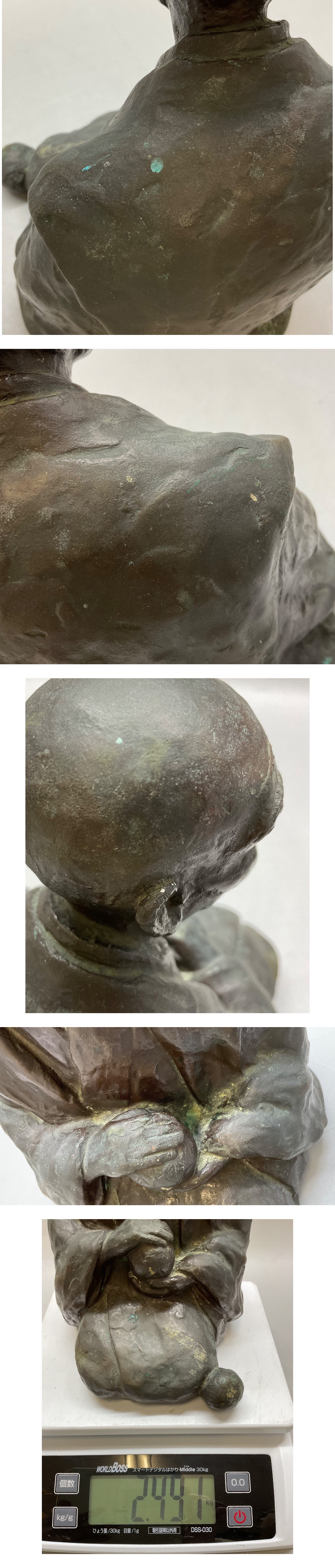 T 中野五一作 ブロンズ 良寛像 文化遺産 良寛 金属工芸 座像 在銘 置物 仏教美術 オブジェ ブロンズ像 銅像 骨董品 銅製 総重量2.491kg 收藏