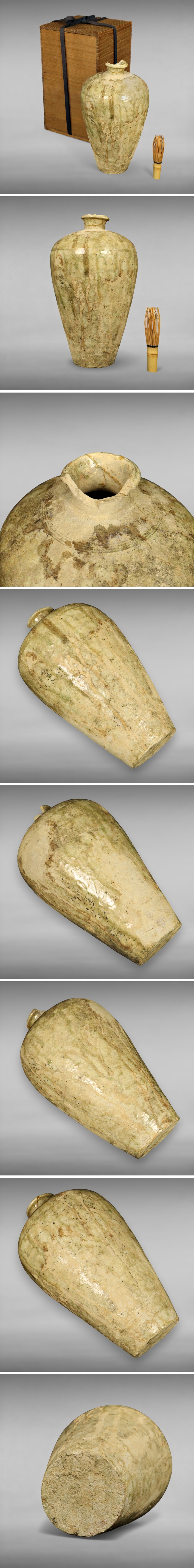鎌倉期 瀬戸焼 古瀬戸 黄瀬戸 瓶子 箱 愛知県 酒器 古陶磁 古美術 骨董品 瓶子壷 梅瓶 壺 花器 花瓶 花入 花生 華道具 1498vhyN 收藏