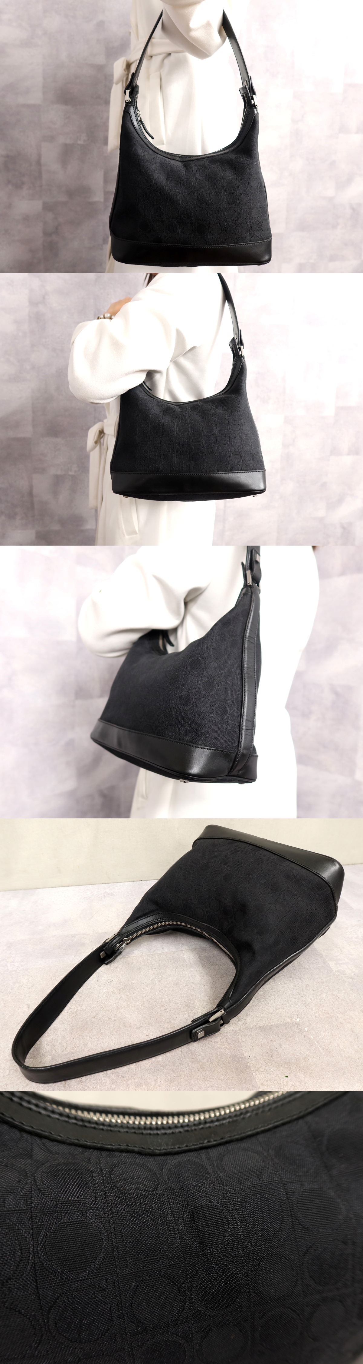 超美品●Salvatore Ferragamo フェラガモ●ガンチーニ●総柄●ナイロン カーフ レザー 本革●ワンショルダー バッグ●黒●SV金具●Js63834 收藏